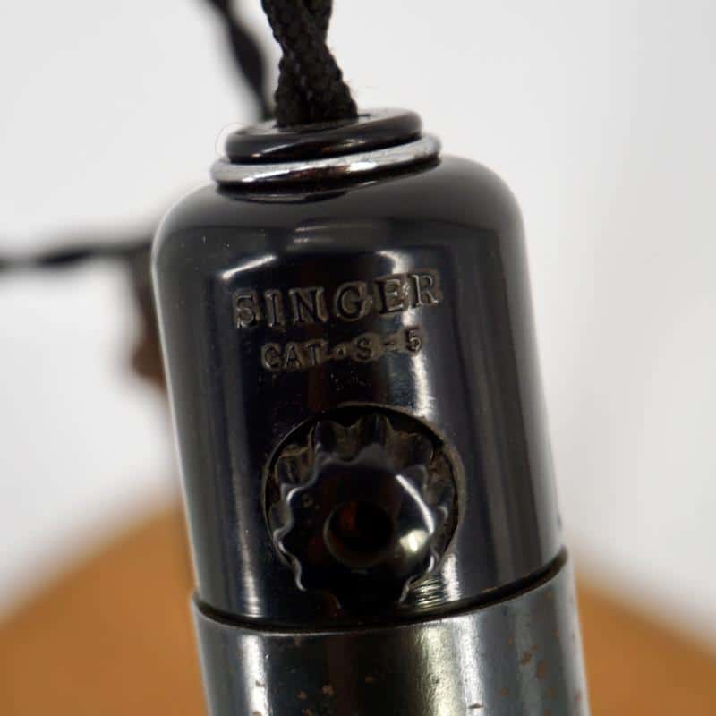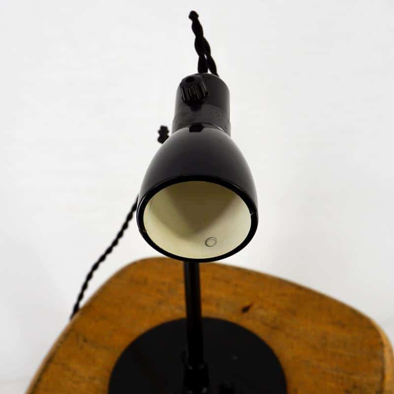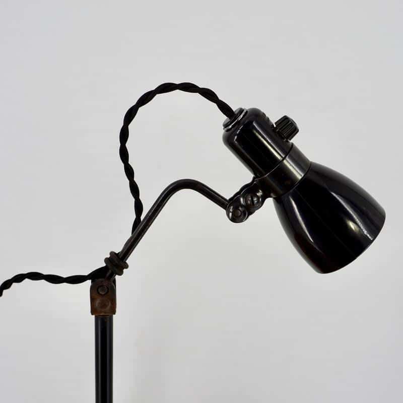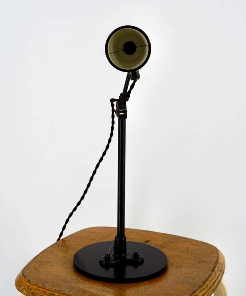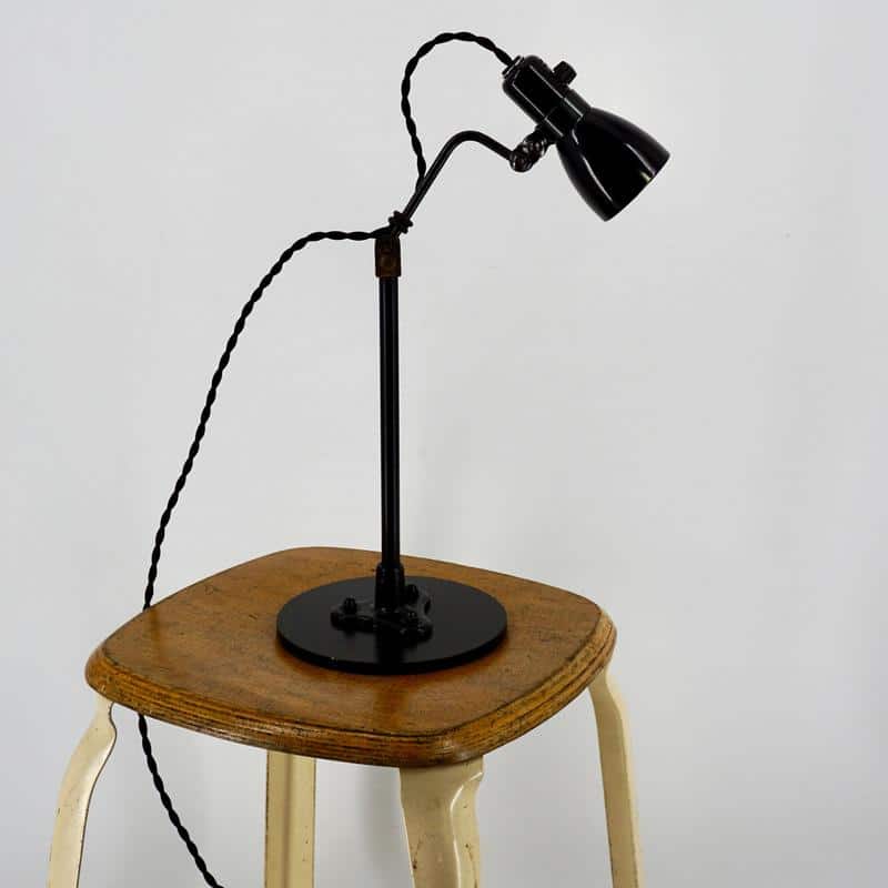 Lampe re-cablée à neuf avec du fil torsadé argenté à l’ancienne.