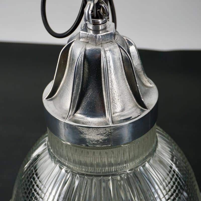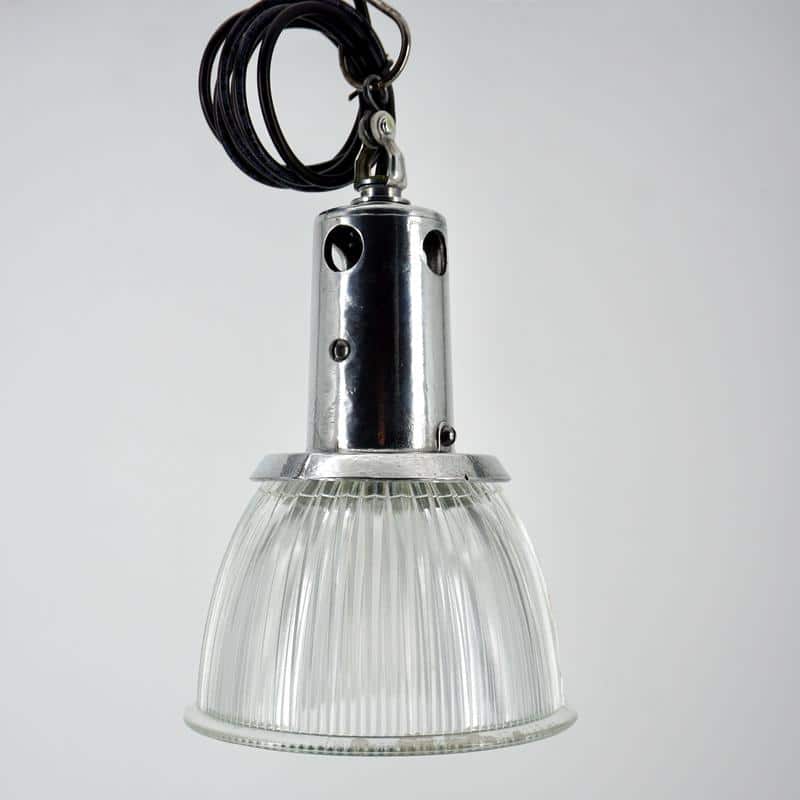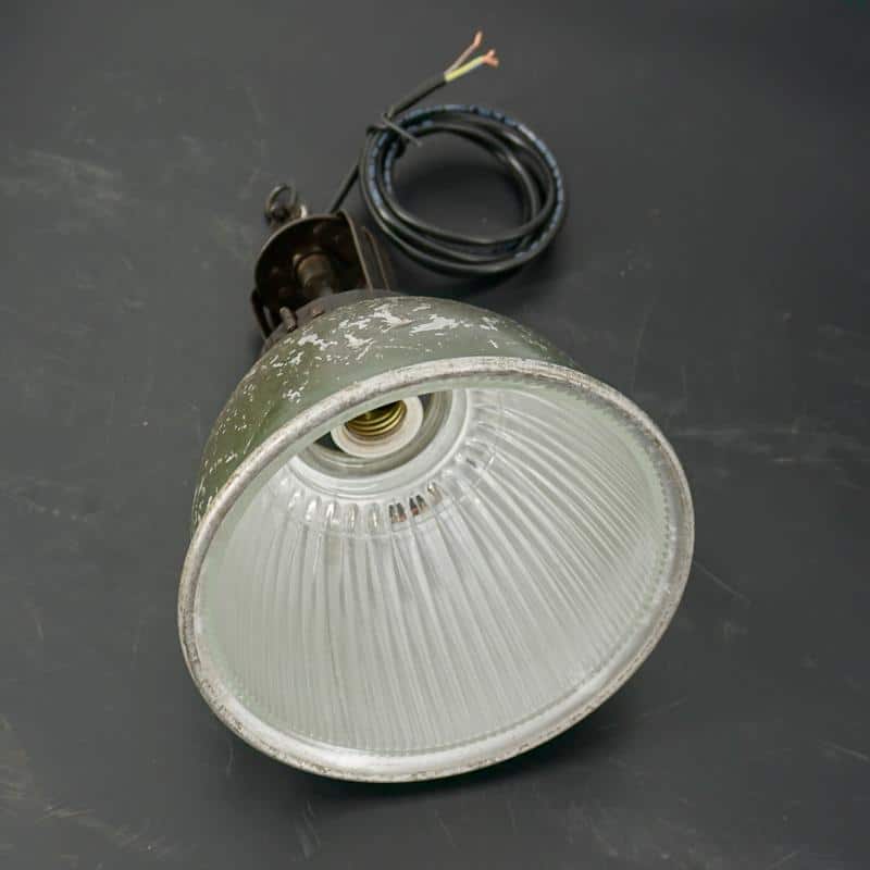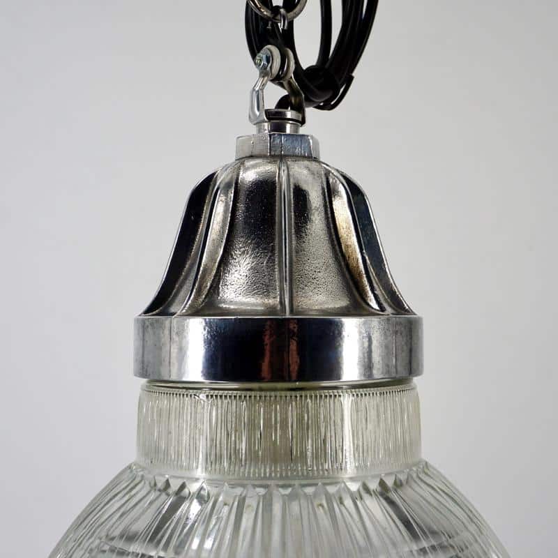 Produites en grande série au début du XXe siècle, les lampes Holophane deviennent un standard de l’éclairage industriel. Leur conception privilégie la performance, la durabilité et la facilité d’entretien.