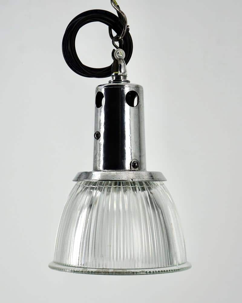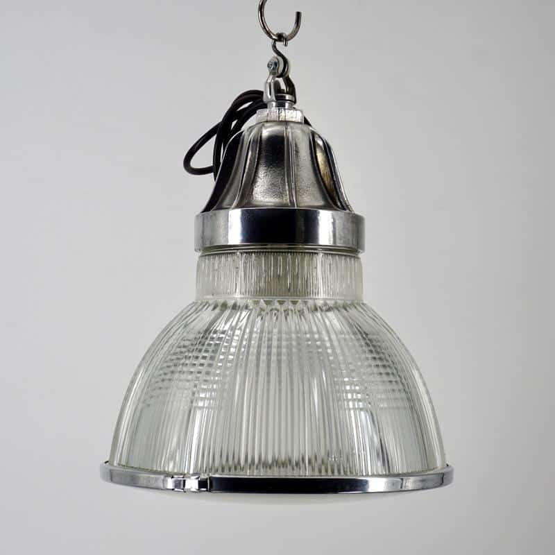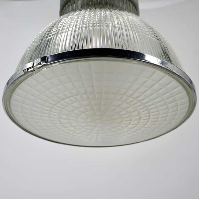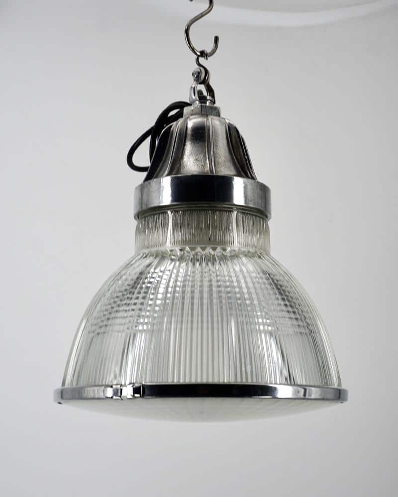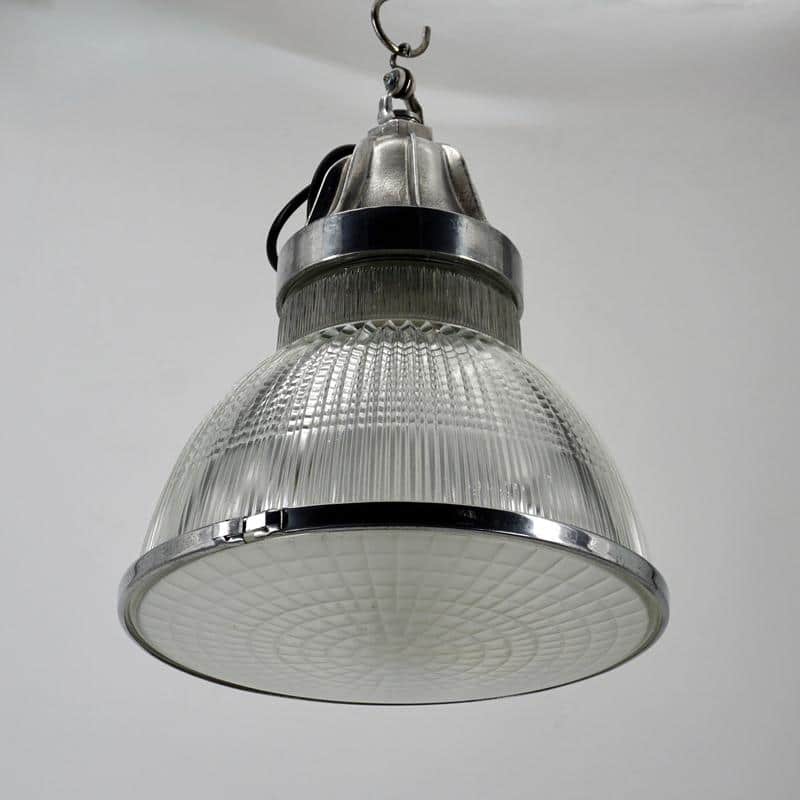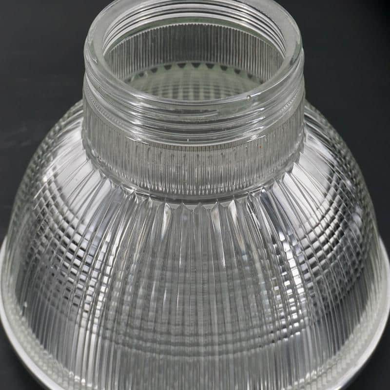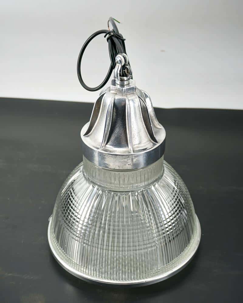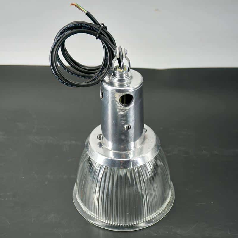 Ces luminaires sont rapidement utilisés dans les environnements industriels, les gares, les entrepôts et les espaces publics, où un éclairage efficace et bien réparti est essentiel. Le verre moulé, composé de prismes, permet de contrôler et d’orienter la lumière avec précision.